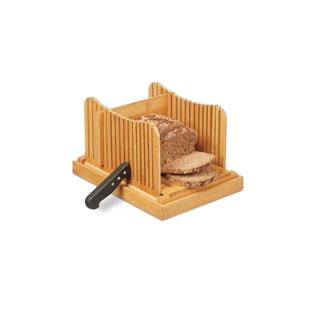 MAHIONG Bambu brödskärare, justerbar bröd skivningsguide, vikbar brödskivningsguide med smulbricka, träbrödskärare för hembakat bröd, limpa, 31,7 x 23,7 x 19 cm