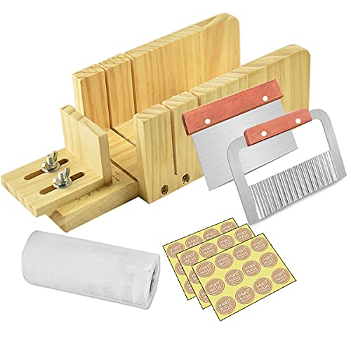 Artcome Tvålskärare set funktion justerbar trä tvål form brödskärare set med rostfritt stål vågig & rak skärare