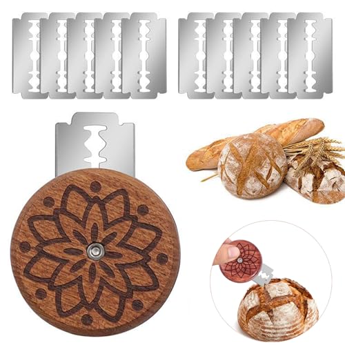 Bonbela brödskärare bröd lame trähandtag bröd lyftverktyg deg scoring kniv med 5 stycken utbytbara blad brödtillverkning kökstillbehör