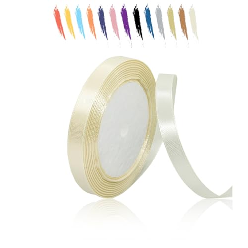 MORAINJAY Elfenbensband 10 mm satinband rulle tyg tjockt för presentförpackning: 23 m, perfekt för ballonger, bröllop, blombuketter, tårta, halloween jul högtid gåvor festdekorationer