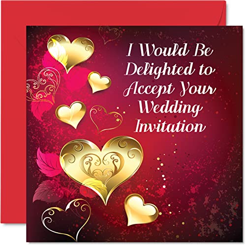 Acceptanskort RSVP för bröllop och fester – Vi skulle vara glada – RSVP-kort bröllop, förlovningsfest inbjudningskort, 145 mm x 145 mm kan inte vänta kort hälsningskort
