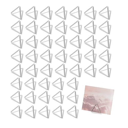 VBNZBK 50 st triangel bordsplats korthållare, bordshållare, bildfotovisningsstativ, bröllop visitkort med silverfolie kant för bröllop bordsplats kort (silver)