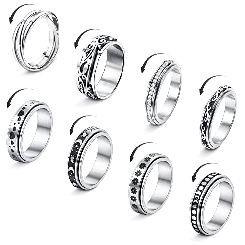 KALVICA 8 st ångestringar för kvinnor män rostfritt stål spinning ringar anti-stress ring för kvinnor fidget band ringar set stresslindring bröllop kändisringar storlek 49–67, Rostfritt stål
