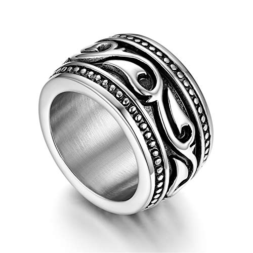 Flongo mäns ring män ringar sigillring bandring, rostfritt stål biker sigill ring keltisk band silver förlovningsring bröllop tumring smycken herrtillbehör, Rostfritt stål