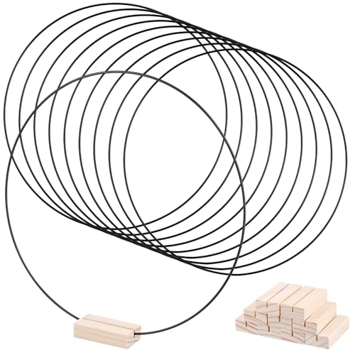 CHUEN 10 stycken 30 cm metallringar, svarta dekorationer med stativ, rund metall dekoration blomkrans ringar för bröllop, festdekoration