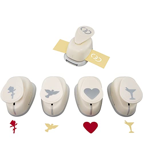Motivstanzer A689945 set bröllop, bröllop 5 motiv 2,54 cm duva, ringar, ros, glas, hjärta, plast, vit