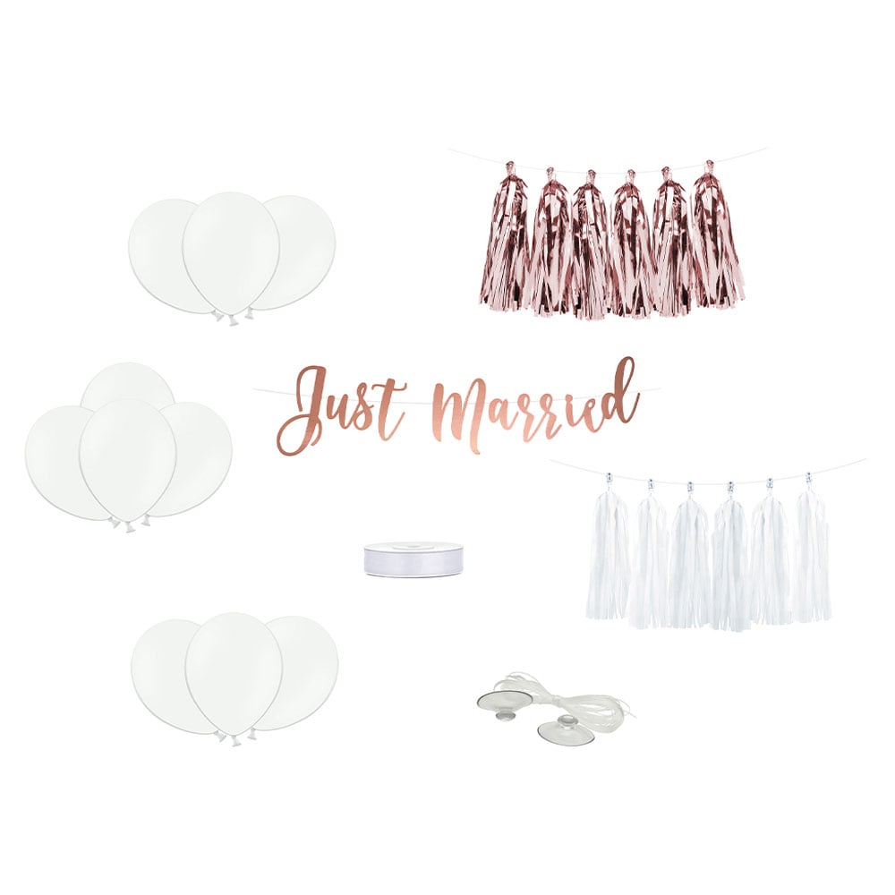 papercrush Pop up-kort, bröllopsbil och 'Just Married' girlang – Ädel 3D-bröllopskort för brudpar, gratulationskort för bröllop, kupong för smekmånad, pengabräda för bröllopsresor och smekmånad