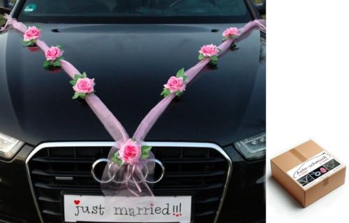 Autoschmuck Organza M bröllopsbil dekoration band organza och rosor (rosa/rosa)