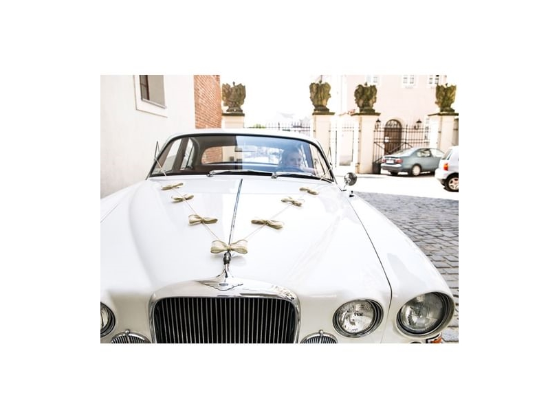 Autoschmuck Organza M bröllopsbil dekoration organza och rosor (citron/vit)
