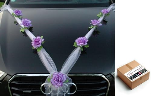 Autoschmuck Organza M Bröllopsbil dekoration organza och rosor (lila/vit)