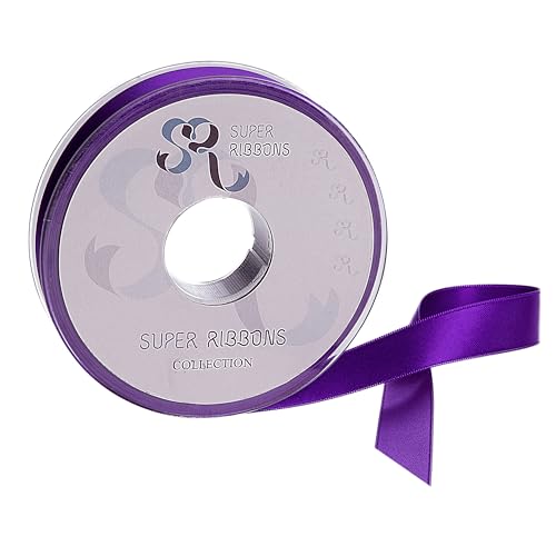 SR SUPER RIBBONS®™ Dubbelsidig satinband, presentförpackning, festdekoration, bröllopsbil, jul, ballonger, hår, tårta, presenter, bröllopsbukett (lila 15 mm x 20 m)