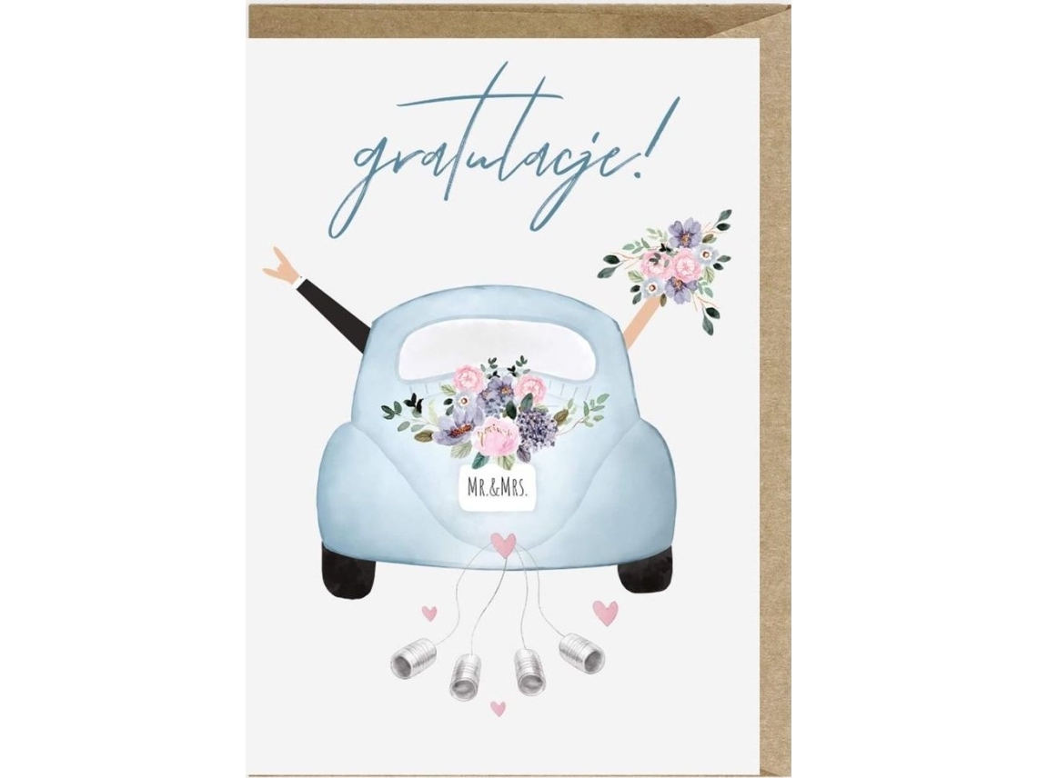 Cardie Bröllopskort, Ekologiskt Kuvert Bröllopsbil K108