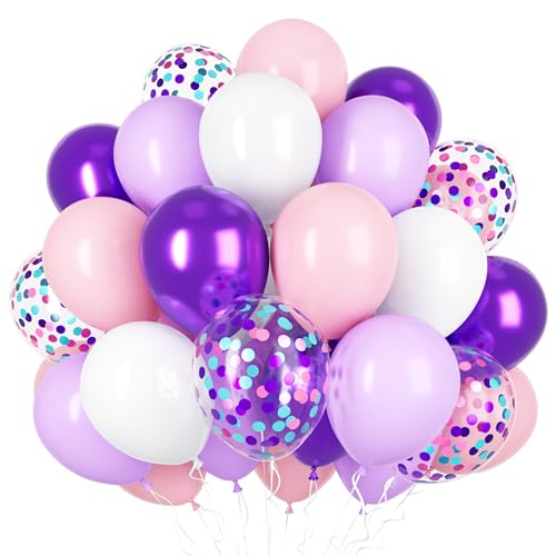Lila rosa ballonger, 50 st 12 tums rosa lila heliumlatexballonger med metalliska lila konfettiballonger för flickor Födelsedag Baby shower Bröllopsdekorationer