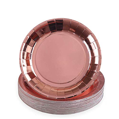 Topways® Roséguld party bordsartiklar, engångspapper fest servis tallrikar festtillbehör för födelsedag, bröllop, bröllopsdekorationer, förpackning med 48 (9 tum)
