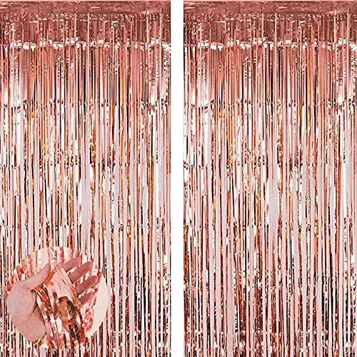 Aisszhao 2 metallgardiner rosguldfest, 1 x 2 m skimrande fransar folietält bakgrund för fotografisk bakgrund, fest, födelsedagsfest, bröllopsdekorationer, babyshower, årsdag, examensdekoration