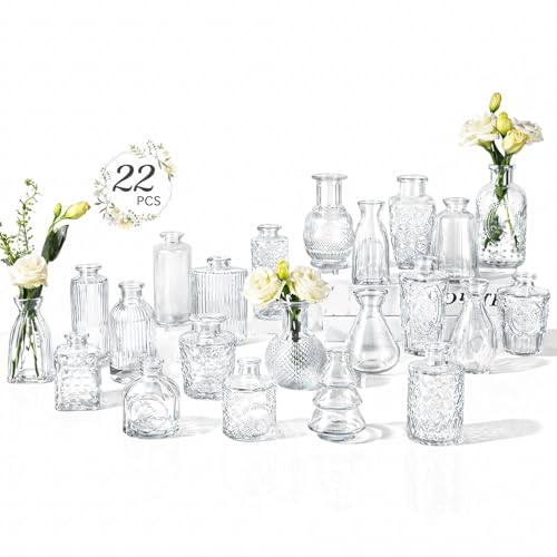 YUTUY Liten vas-sats, 12 st liten glasvas, vintage dekoration vaser minivas-set bordsvas olika stora blomvas för bordsdekoration, mittstycken, bröllopsdekorationer blommor dekoration