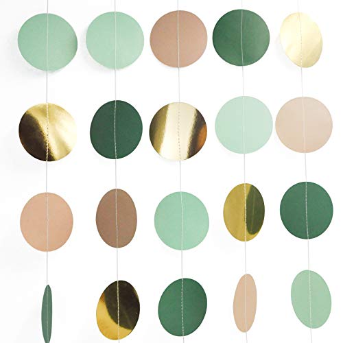 NICROLANDEE Bröllopsfestdekorationer – skogsgröna prickar pappersgirlang snöre hängande festbakgrund för neutrala babyfester, födelsedag, brudduschar, rustika bröllopsdekorationer