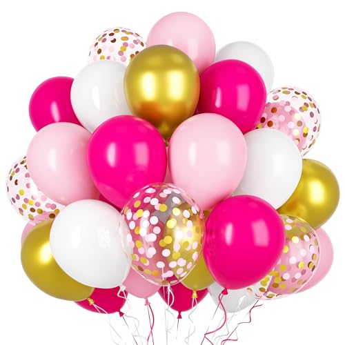 Rosa röda rosa ballonger, 50 st 12 tums rosa rosa röda heliumlatexballonger med metalliskt guld konfettiballonger för flickor Födelsedag Baby shower Bröllopsdekorationer