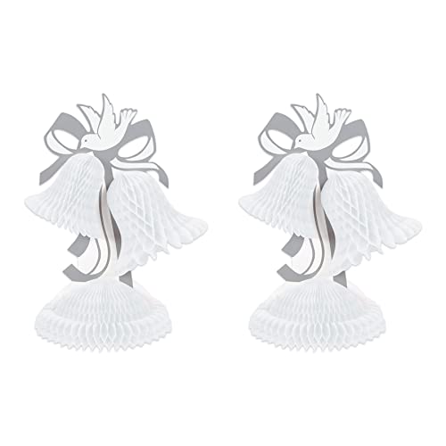 Beistle S55311-WAZ2 2 delar vaxkaka näsduksklocka bordsuppsatser för bröllopsdekorationer, möhippa dekor, jubileumsfesttillbehör, papper, vit/silver