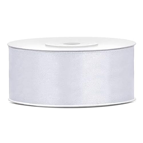 Decoraparty 2,5 cm vitt dubbelsidigt satinband, 25 m lång spole för bröllopsdekorationer, brudgåvor, dop, nattvard, jul, gratulationskort, blombukett, lådor med dragéer