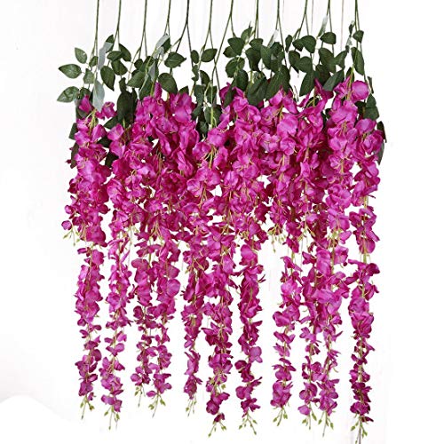 Veryhome, 12 st/parti 1,1 m konstgjorda blommor, falska blåregn, vinstockar, silke, blomma för bröllopsdekorationer, hem, trädgård, festdekor, (rosröd)