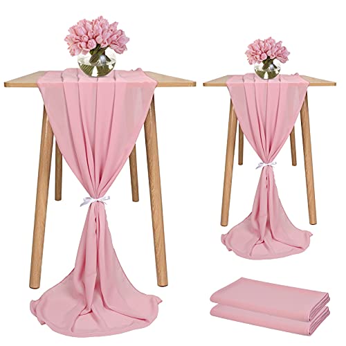 Showgeous 2 st Chiffong Bordslöpare 28x120 Inches Romantisk Bröllopslöpare 10ft Dammig Rose Skir Chiffong Bordsöverdrag Sminkbordslöpare för bröllop Födelsedagsfest Bröllopsdekorationer Baby Shower