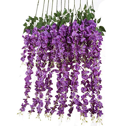 Veryhome, 12 st/parti 1,1 m konstgjorda blommor, falska blåregn, vinstockar, silke, blomma för bröllopsdekorationer, hem, trädgård, festdekor (lila)