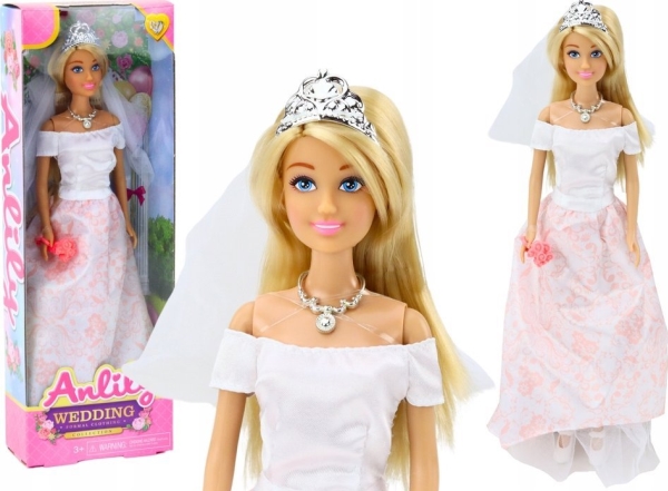 Leantoys Bröllopsklänning Docka Brud Vit Klänning Slöja Blommor