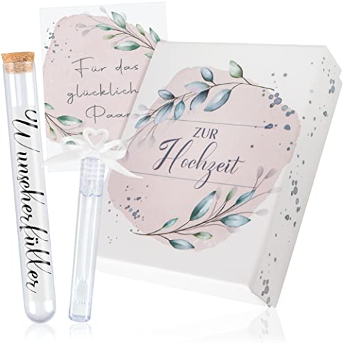WeddingTree Presentask, pengagåva, bröllop – present till brudpar – presentförpackning med provglas, bröllopskort och såpbubblor – bröllopspresent