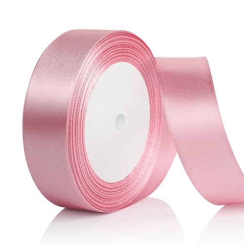 AiQInu Satinband Rosa Guld, 25 mm x 22 m för presentförpackning, DIY, buketter, presentband för bröllopspresent, sömnadsprojekt, rosetttillverkning, dekorationer