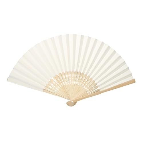 Dekoration ribbad fack Kina stil enkel handgjort papper hopfällbar solfjäder trä gör-det-själv tomma fack för brudsdans bröllopspresent fest cosplay tillbehör (CREMEWEISS)
