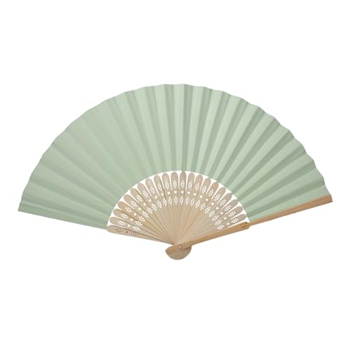 Tissting Dekorativa ribbor fack Kina stil enkel handgjort papper vikbar solfjäder trä gör-det-själv tomma fack för brudsdans bröllopspresent fest cosplay tillbehör (grön-2)