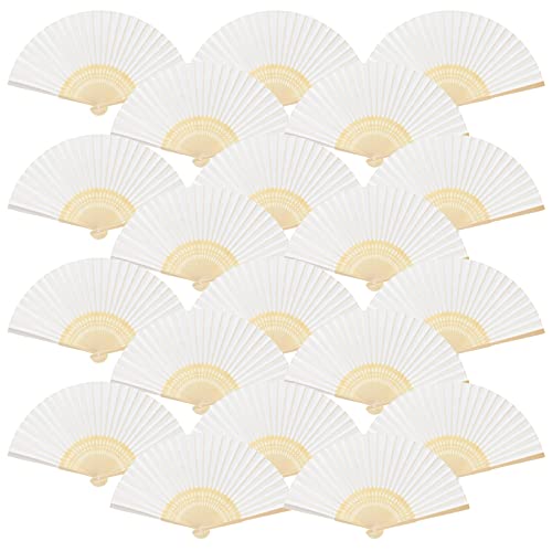 FEPITO 20 stycken vita handhållna pappersfläktar, vikbara fläktar med bambu, för bröllopspresent, fest, hem, gör-det-själv, flerfärgad
