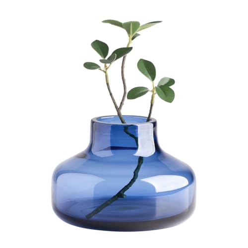 Torre & Tagus enfärgad rund konstglasvas för blommor – 10 cm hög unik blomvas, klar handgjord flaskvas för modern heminredning, knoppvas som dekorativ hylldekor eller bröllopspresent, blå