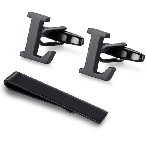 HONEY Björn första alfabet bokstäver manschettknappar slipsklämma set för män – svart rostfritt stål, för affärer bröllopspresent A – Z e rostfritt stål, colore: Svart, cod. CF1882