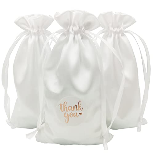DUGYIRS 30 stycken satin vita presentpåsar 12 cm x 20 cm, smyckesväskor bröllopspresent dragsko-väskor babyshower presentpåsar