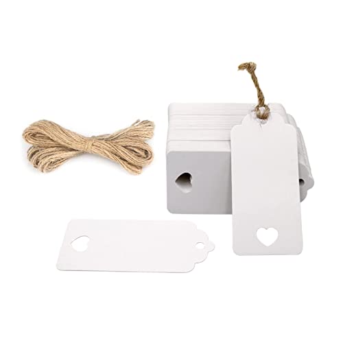 FAMIDIQGO Vit hängande dag med hjärta, 100 stycken presentetiketter med 20 m juterep, vitt etikettkort med hjärta, bröllopspresent med juterep för jul