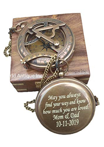 Personalized Kompass, graverad kompass, anpassad kompass, bröllopspresent, jul, dop, examen, pojkscouter, solurtavla, nautisk, årsdag, fars dag (antik finish med trälåda)