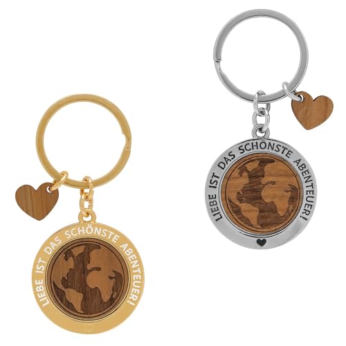 GRUSS & CO nyckelring, nyckelhållare, nyckelkedja med motiv äventyr | hängsmycke-set med 2 trähängen, berlock | Present till par, bröllopspresent | 48561, flerfärgad, Länge 7 cm, Motiv ''äventyr''