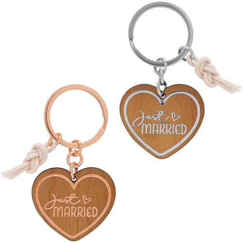 GRUSS & CO nyckelring "Just married" | Hänge-set med 2 trähängen, berlock och nyckelring | Present till par, bröllopspresent | 48559, flerfärgad, Länge 7 cm, Motiv "Just married, trä"