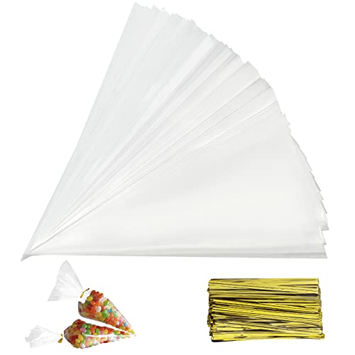 Firschoie 150 st genomskinliga godispåsar, klara konpåsar, godisväska i plast, kex, bröllopspresent, för förpackning av kex chokladkaka (13 x 25 cm)