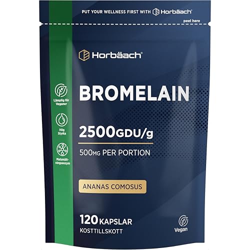 Bromelain Forte 2500 GDU | 500mg | Matsmältningsenzymer Kosttillskott Hög Dos | 120 Veganska Kapslar | av Horbaach