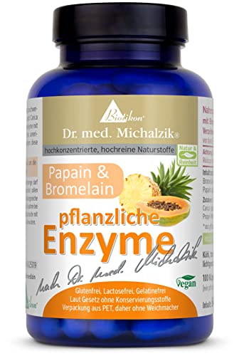 Vegetabiliska enzymer enligt Dr. med. Michalzik - innehåller växtextrakt av hög kvalitet - 100 kapslar - 340 mg bromelain per kapsel 170 mg papain - utan tillsatser - från BIOTIKON®