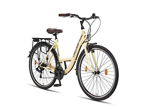 Chillaxx Bike Strada, högkvalitativ stadscykel, 26 och 28 tum – cykel för flickor, pojkar, män och kvinnor – 21 växlar – hollandcykel/citybike (beige, V-bromsar, 28 tum)