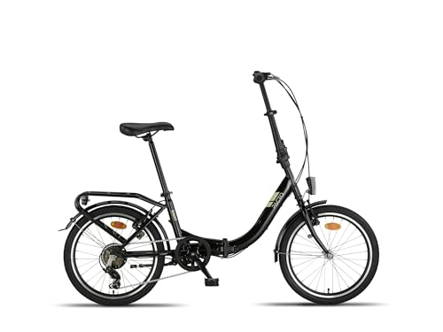 PACTO EIGHT Hopfällbar cykel, högkvalitativ, 27 cm stålram, 20 tum aluminiumhjul, 6 växlar, v-bromsar, lätt att vika, (svart)