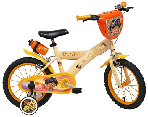 Vélo ATLAS Sandprinsen (14 tum utrustad med 2 bromsar, dekorativ frontplatta, bakre flaskhållare, 2 stabilisatorer + mudvakt) cykel pojke
