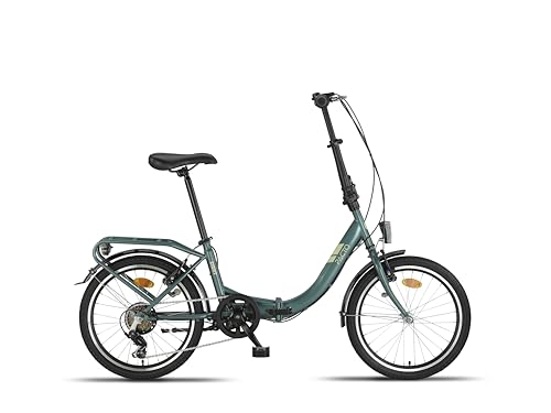 PACTO EIGHT Hopfällbar cykel, högkvalitativ, 27 cm stålram, 20 tum aluminiumhjul, 6 växlar, v-bromsar, lätt att vika, grön