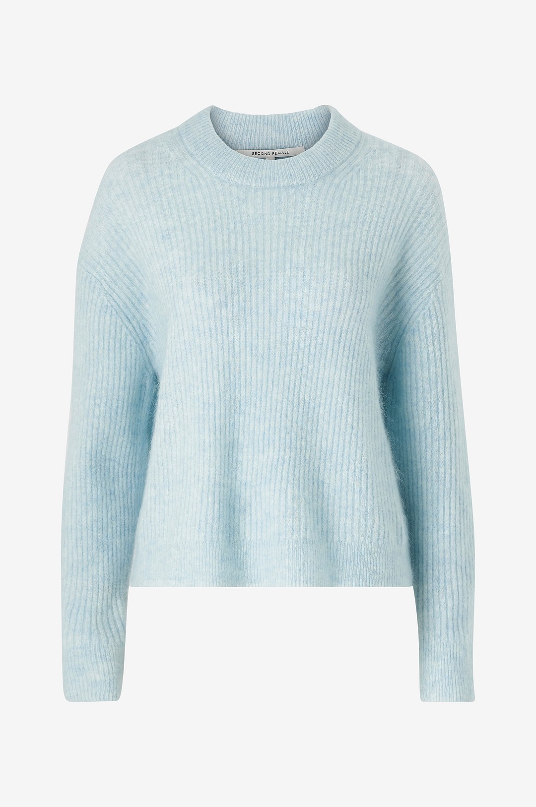 Second Female - Tröja Brook Knit Rib O-neck - Blå