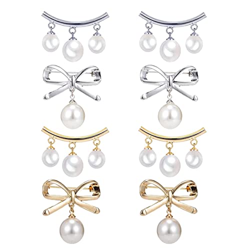 Youery 8 stycken broschstift för kvinnor, falska pärlor broscher för kläder, flera storlekar vintage broscher säkerhetsnålar, smyckesnål, elegant pärla kofta krage brosch clips för byxor klänning kjol