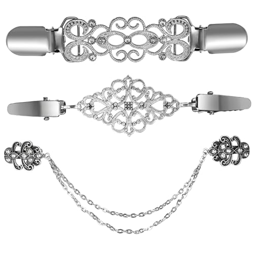 Lnngub 3 stycken kofta klämmor, 3 stilar halsduk spänne av zinklegering vintage pullover klämmor klämmor blusar clips broscher för kläder silver kofta clips för kvinnor och flickor, 19.8 cm/13 cm/9.5